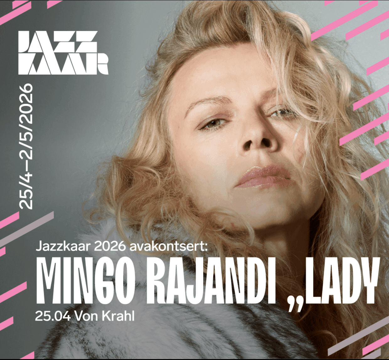 L, 25.04 18.00 Von Krahl Jazzkaar 2026 avakontsert: Mingo Rajandi „Lady Sapiens” (Eesti-Belgia)